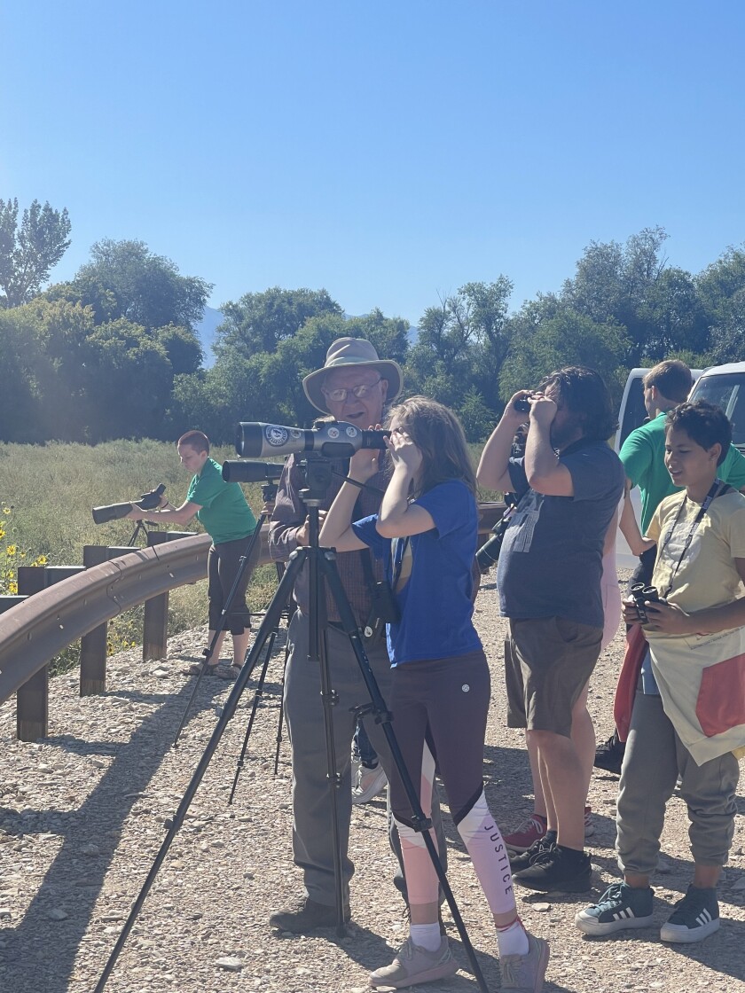 The day revolved around the bird life near Utah lake and the Provo River Delta. At only the first stop, the group was able to identify several species of waterfowl (including heron, cranes, mallards, egrets, gulls, and pelicans) and spotted 2 bald eagles in the distant tree line. After moving a ways down the water’s edge, the group spotted an Avocet, Wood Duck, Kingfisher, Cooper’s Hawk, and even a Peregrine Falcon. Everyone was equipped with a pair of binoculars, and some in the group brought spotting scopes that were shared for an even better sighting.